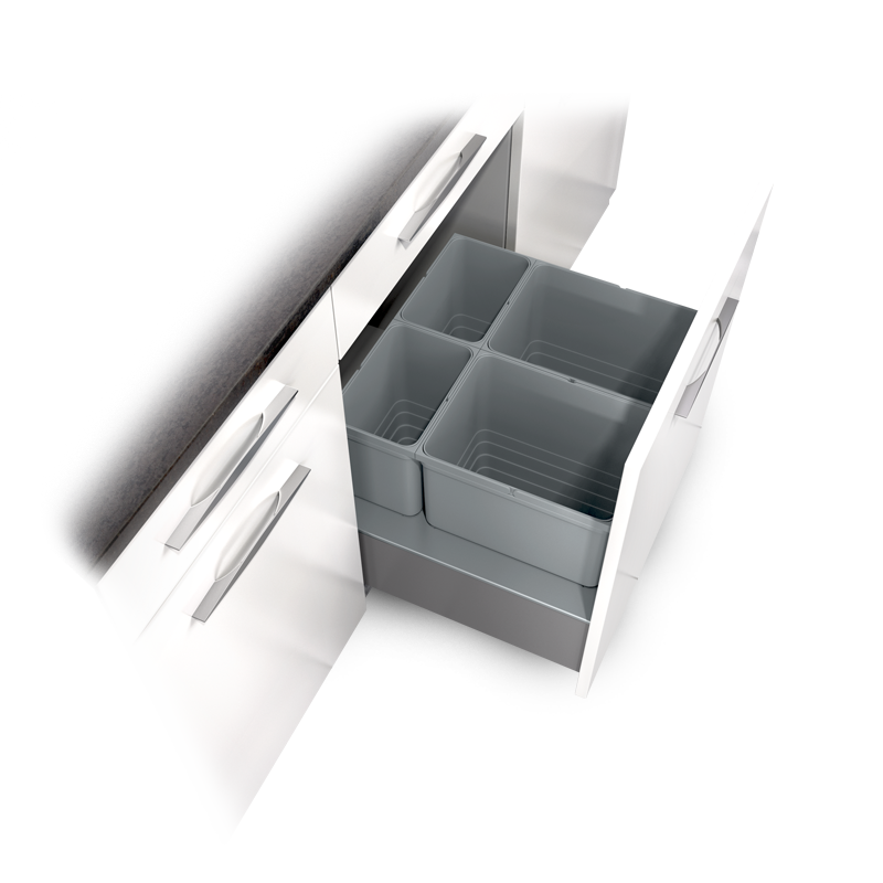 8 Behälterhöhen für alle gängigen Schubkasten- und Schranktypen